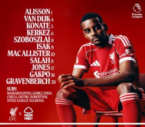 利物浦首发:伊萨克出战英超 11-22 21:51英超第12轮,利物浦主场迎战诺丁汉森林,赛前利物浦首发阵容已经出炉,具体...