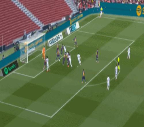 第24分钟,巴萨后防线造越位失败,雷巴赫禁区左侧巧妙传中,洪尼-莫托后点包抄飞身铲射,霍安-加西亚飞身将球扑出。