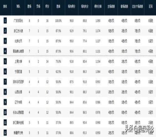 CBA最新排名:广东8连胜冲上榜首黑马战绩狂飙山西连败意外掉队