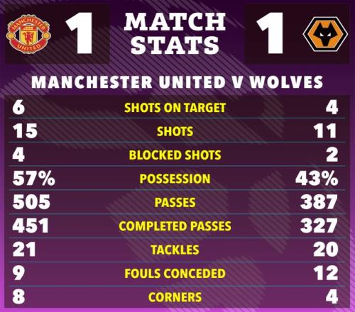 狼队最近的斗志确实顽强,他们之前3个客场都只是一球小负阿斯顿维拉、阿森纳和利物浦。对曼联的比赛战平,可能是其应得的赛果。讽刺的是,狼队上一次英超取胜,恰是上赛季在老特拉福德击败红魔!
