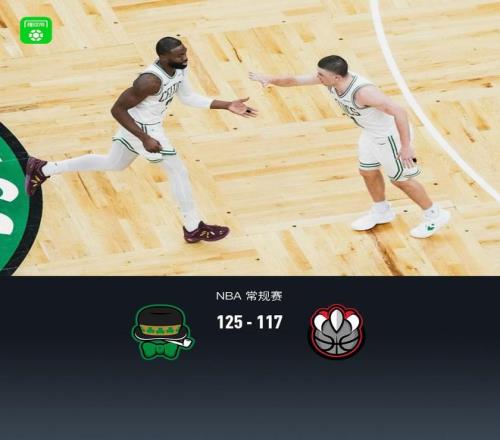 第四节凯尔特人德里克-怀特拿下8分,猛龙马穆凯拉什维利拿下11分,最终凯尔特人125-117战胜猛龙